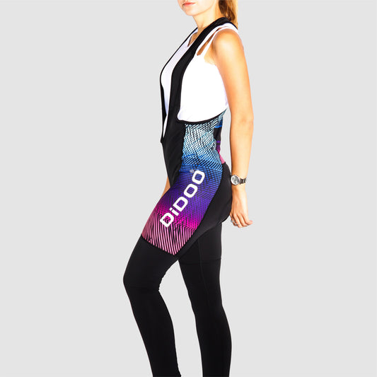 DiDoo Women Pro Padded Winter Bib Tights Black and Multicolour Strips