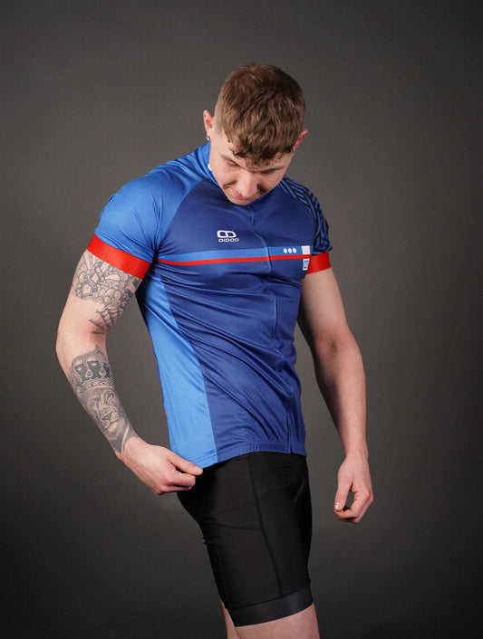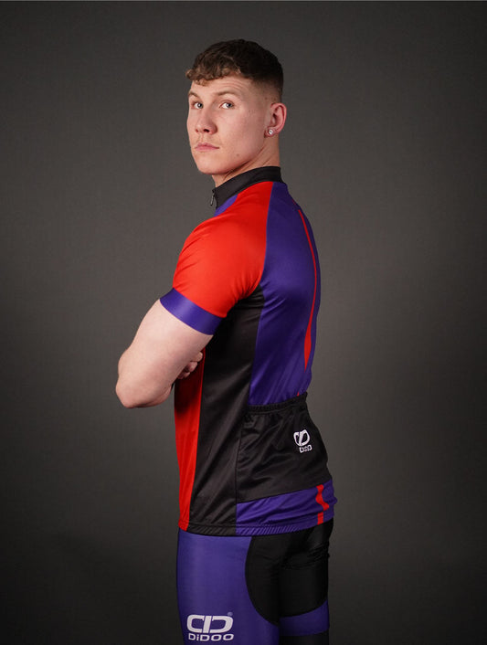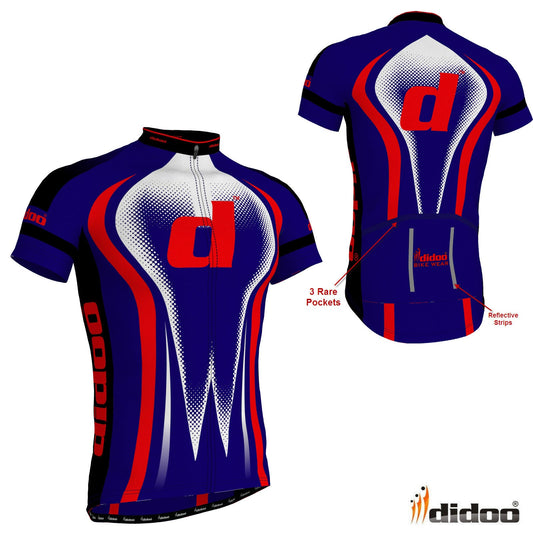 DiDOO Men's Power Pro Short Sleeve Cycling Jersey Red and Blue