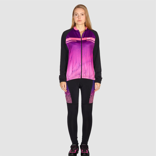 DiDOO Women Pro long sleeve winter cycling jersey Purple and Pink