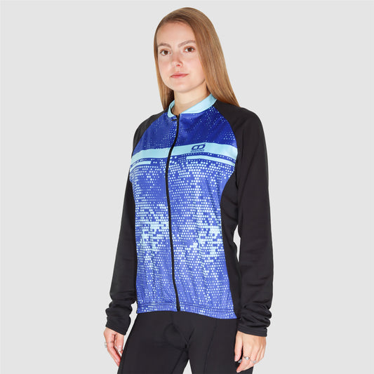 DiDOO Women Pro long sleeve winter cycling jersey Black and Blue